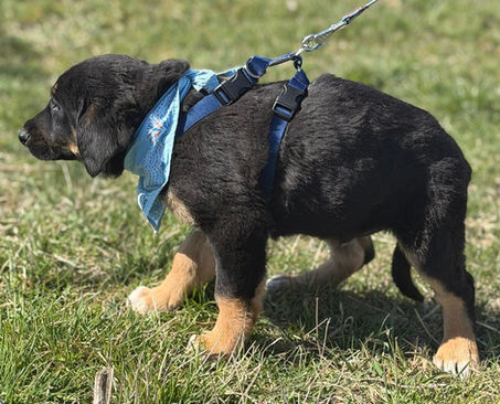 Als Welpe braucht er eine verlässliche Tagesstruktur, altersgerechte Beschäftigung, viele Ruhephasen und ein Training in kleinen Schritten, damit Themen wie Stubenreinheit, Leine laufen, Umweltreize, Besuch oder auch das kurze Alleinbleiben entspannt aufgebaut werden können.