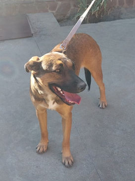 Cleo ist eine ca. 10/2024 geborene Mischlingshündin mit einer Schulterhöhe von ca. 60 cm. und wiegt ca. 27 kg.