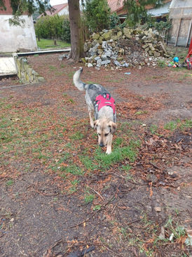 Elisa ist eine 12/2022 geborene Mischlingshündin mit einer Schulterhöhe von 60 cm. und wiegt 26 kg.