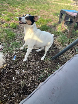 Jacky ist eine ca. 2017 geborene Jack-Russell Terrier-Mixhündin mit einer Schulterhöhe von ca. 35 cm.