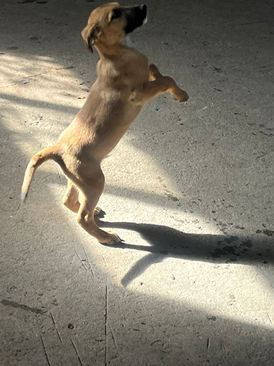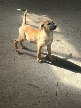 Knuddel, geboren im Juli 2025, ist ein kleiner Mischlingsjunge, der einmal mittelgroß werden wird.