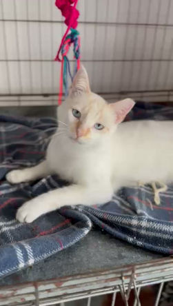 Dieser wunderschöne cremefarbene Siamkater mit den bezaubernden blauen Augen war auf einmal in einem Hundetierheim aufgekreuzt und war schon kastriert.