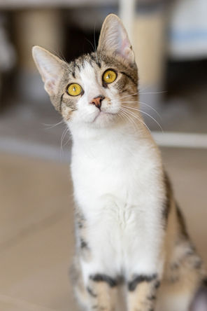 Bibis Start ins Leben war nicht leicht. Als gerade einmal 6 Wochen altes Kitten wurde sie einer Tierschützerin in Zypern direkt vor die Haustür gesetzt. Sie hatte damals eine schlimme Infektion beider Augen. Auch wenn sofort reagiert wurde, konnte ein Auge leider nicht gerettet werden und wurde operativ entfernt. Auf dem anderen Auge hat Bibi noch Sehvermögen, jedoch auch eingeschränkt durch eine Eintrübung der Hornhaut als Folge der damaligen Infektion. Bibi lässt sich dadurch jedoch überhaupt nicht einschränken, sondern läuft ihren Menschen überall hinterher und fordert sich Kuscheleinheiten ein.