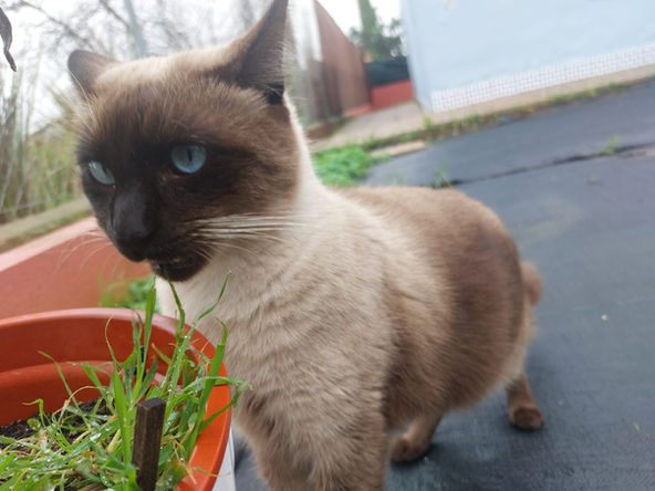 Kiko (geb. ca. 09.2023) ist der siamesische Charmeur mit den klaren, blauen Augen und der dunklen Maske, der aussieht, als würde er ständig „Ich hab da eine Idee“ denken. Sein Herz schlägt besonders für Katzengras: Sobald es irgendwo raschelt oder frisch nach Grün duftet, ist Kiko zur Stelle und lässt sich das kleine Glück nicht entgehen.