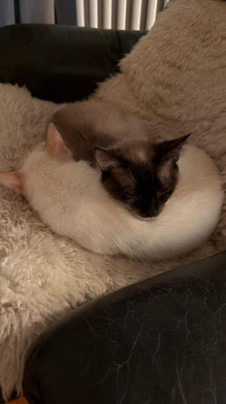 Kokos ist der ruhigere Part der beiden. Sobald er Vertrauen gefasst hat, weicht er seinem Menschen kaum noch von der Seite. Er ist sehr verschmust, liebevoll und genießt Aufmerksamkeit und Nähe. Gemeinsam ergänzen sich die Brüder perfekt.