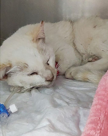 Nito (weiß) kam 2021 in einem sehr schlechten und kritischen Zustand ins Tierheim von Ciudad Real/Spanien.