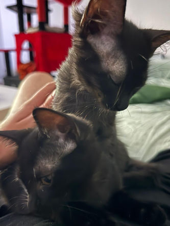 Die beiden zauberhaften Katzenmädchen Yuffie und Tifa sind etwa 4 Monate alt und auf der Suche nach einem liebevollen Zuhause, das sie gemeinsam erobern dürfen. Die Schwestern sind nicht nur wunderschön mit ihrem glänzenden, schwarzen Fell, sondern auch voller Neugier, Spielfreude und Herz.