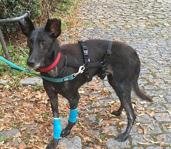In der Pension wurde sofort mit seiner Behandlung begonnen und die Symptome gingen zurück. Leider wurde Harry in der spanischen Pension Opfer eines Beißunfalls. Davon muss er sich noch immer erholen, denn eine Stelle entzündet sich immer wieder. Inzwischen befindet Harry sich in einer Pflegefamilie in Bayern und wird rührend umsorgt. Er ist jedoch sehr stressanfällig und kratzt sich dann blutig. Aufgrund der Leishmaniose ist die Haut und das Immunsystem bei Harry sehr anfällig. Ein endgültiges Zuhause für ihn suchen wir also weiterhin. Harry ist ein ca. 4/2015 geborener Podenco-Mix-Rüde mit einer Schulterhöhe von ca. 47 cm. Falls Sie ein Herz für Harry haben, dann klicken Sie bitte hier: